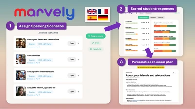 Marvely now lets teachers assign unlimited GCSE speaking scenarios for free across French, German and Spanish, with AQA and Edexcel coverage plus AI lesson plans based on real class performance.